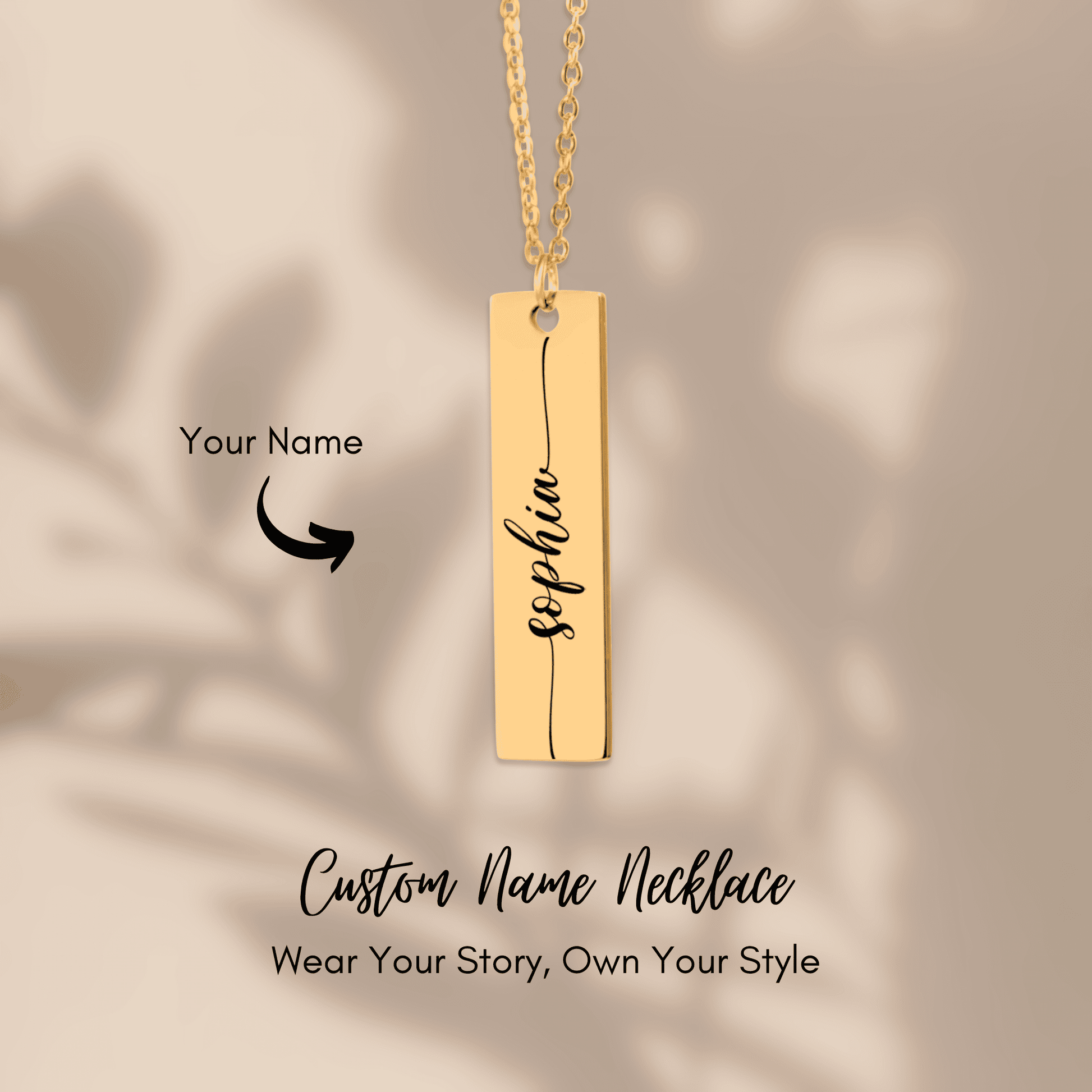 This custom name necklace transforms a single word or name into a meaningful everyday treasure. Engraved with care on a polished pendant, it’s the perfect minimalist piece for anyone who loves subtle, personal details.
